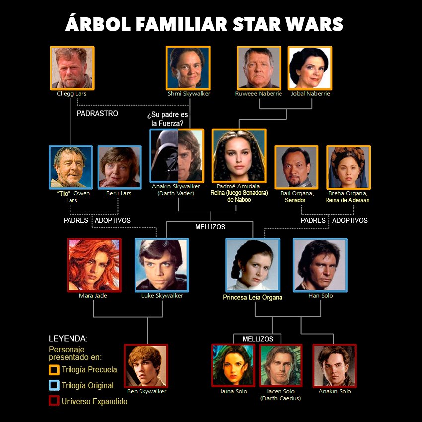 Árbol genealógico de Star Wars creado por ChartGeek.