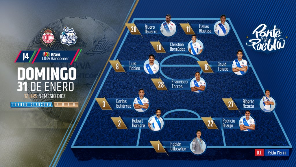Esta es la alineación del Puebla que enfrenta a Toluca. Vía