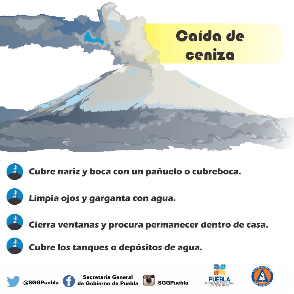 Les comparto las siguientes recomendaciones ante caída de ceniza del volcán